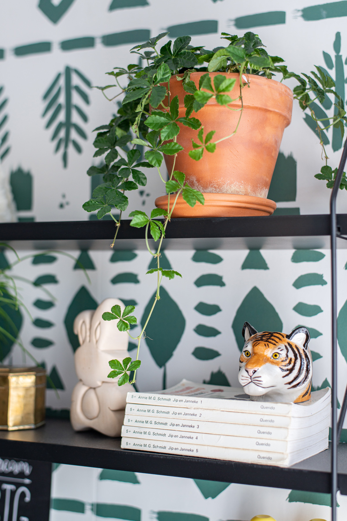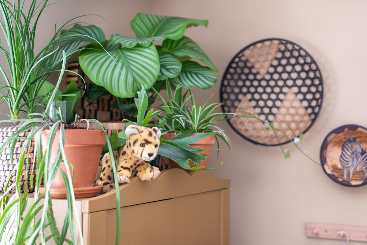 Ook planten konden natuurlijk niet ontbreken. Op de kast heb ik een mini urban jungle gemaakt. En ze zuiveren ook nog eens de lucht!
