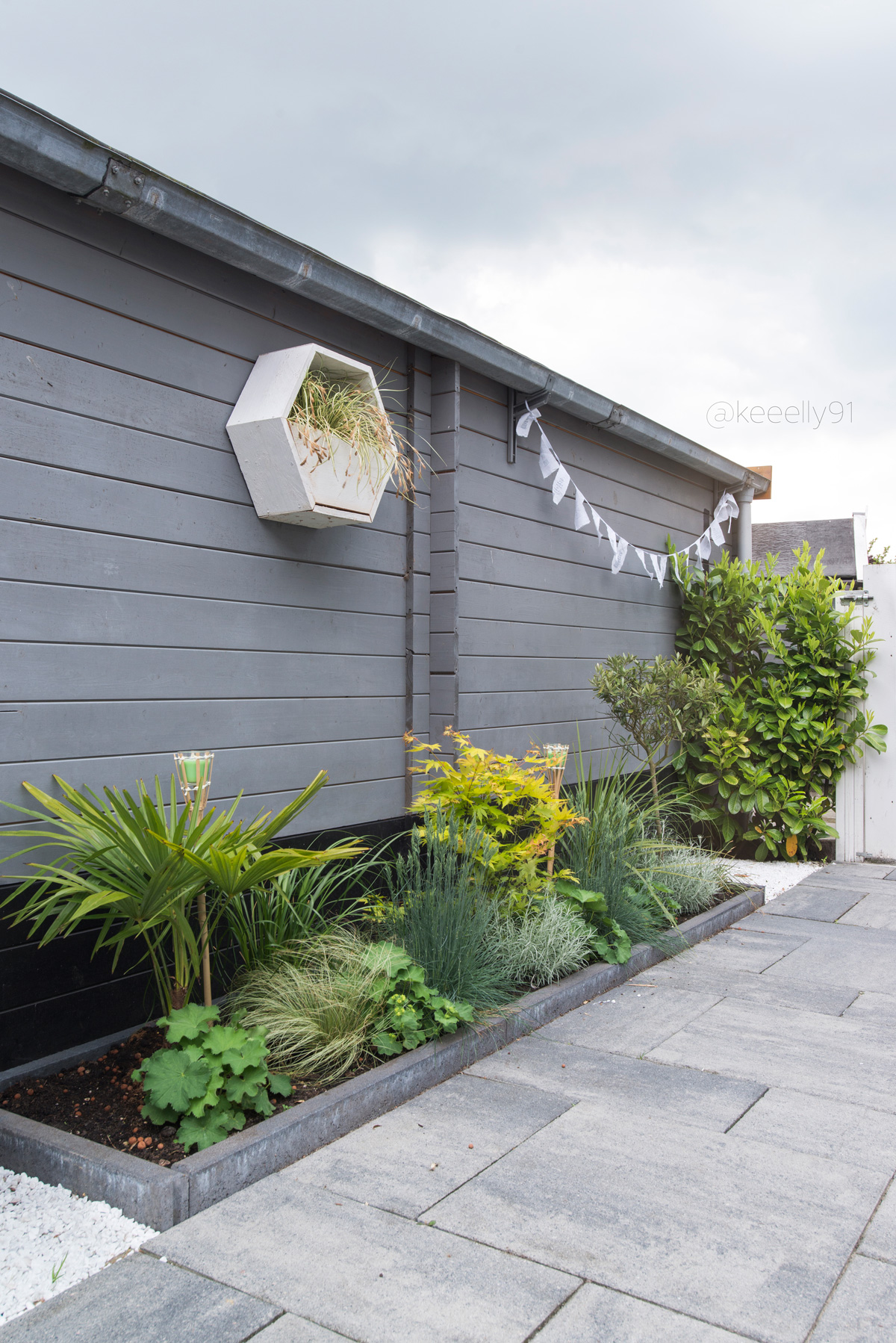 Ook de border hebben we goed aangepakt. Met kerst had ik namelijk een super tof idee. Ik had een kleine kerstboom die binnen stond buiten gezet om hem vervolgens de volgende kerst weer binnen te zetten. Vond-ie níe zo leuk… Het was nu een “brocante” kerstboom geworden zoals jullie op de foto hieronder zien haha! Hup eruit met dat dooie ding. Frisse grassen en een mooie palm erin! Wauw wat een verschil. Hebben jullie ook favo tuinplanten?